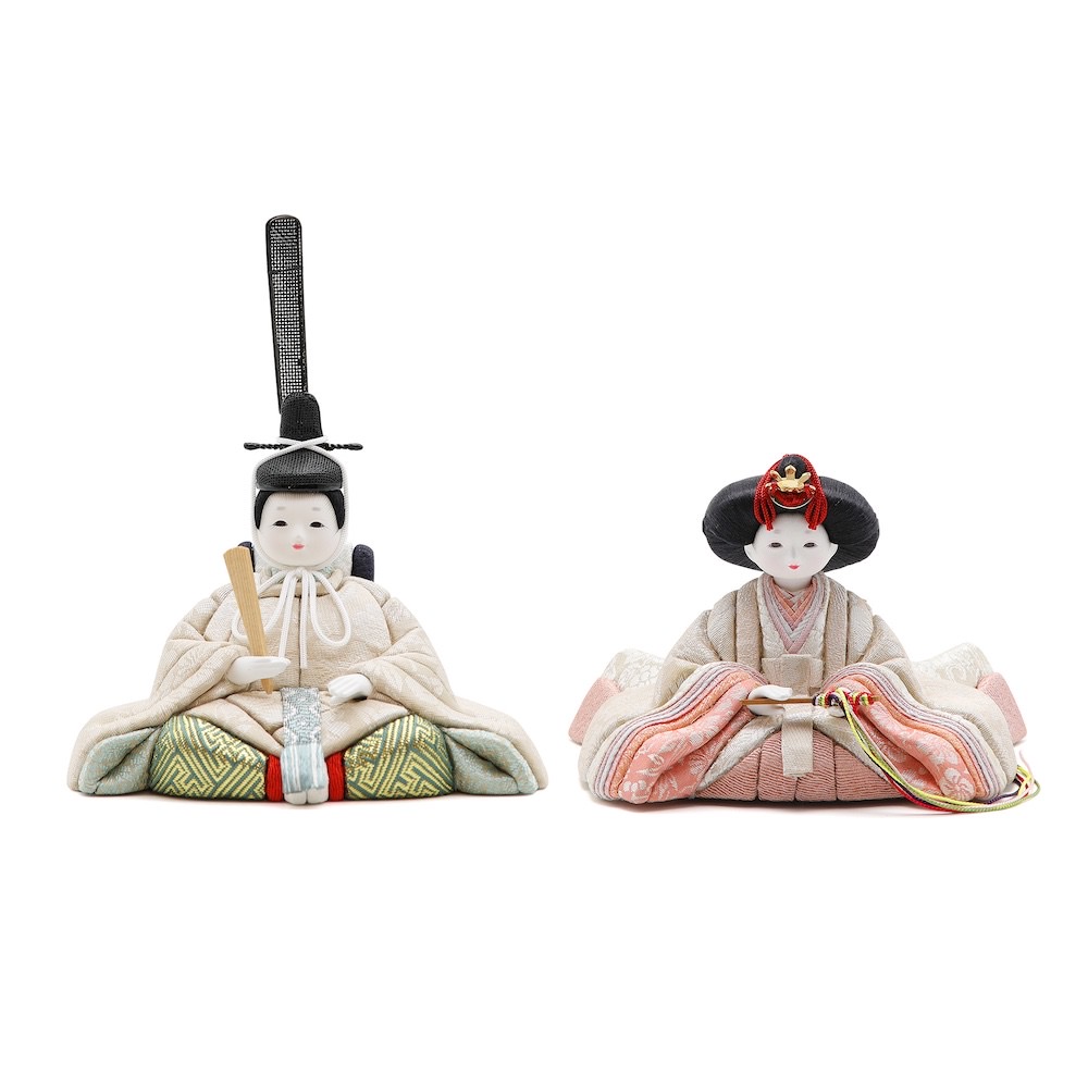 可愛らしく、モダンな親王様を主役に可愛らしい三人官女を添えたどんな場所にも飾りやすい品です。