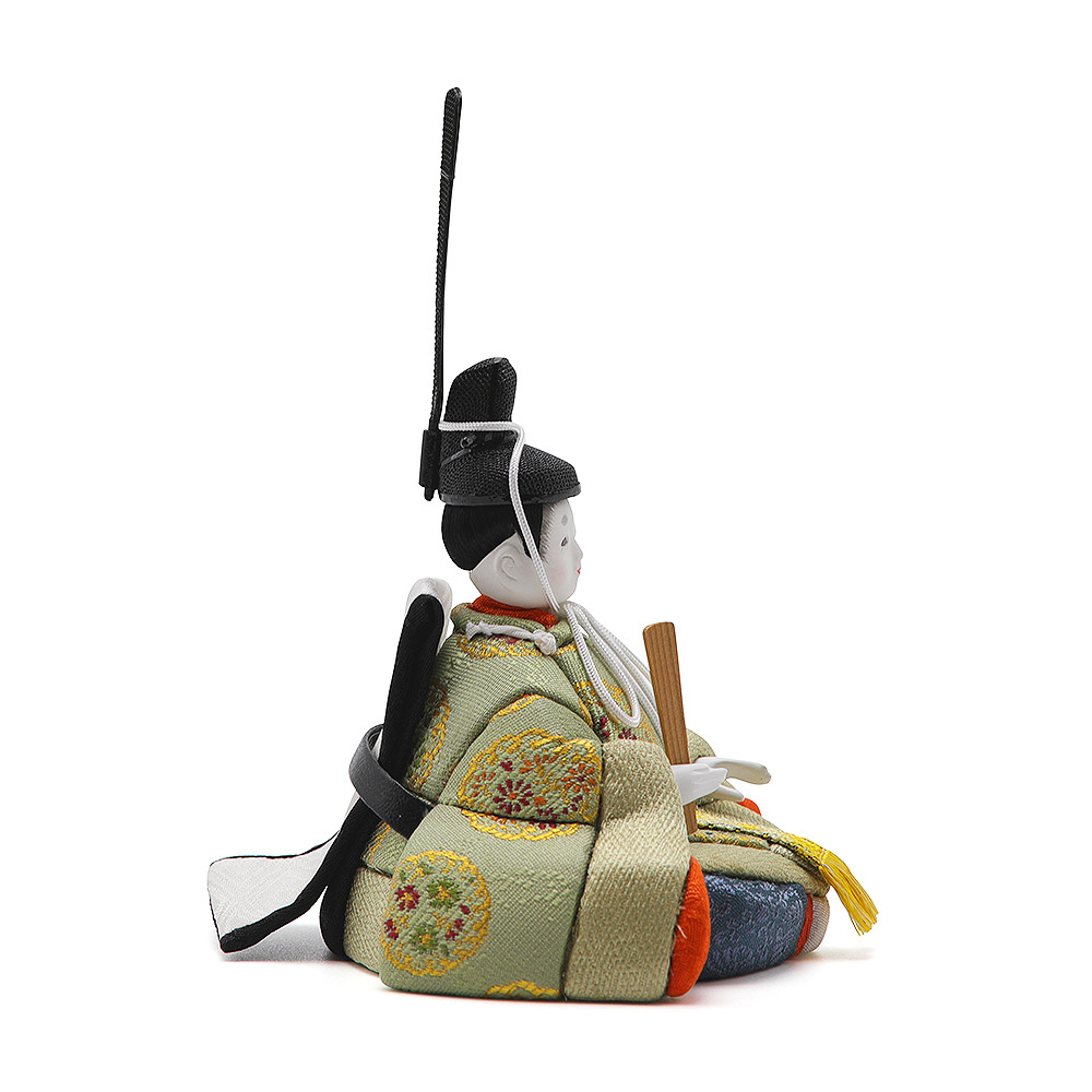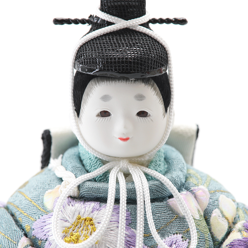 飾り台は高岡漆器の富山県高岡にて製作した一閑塗りの品。一閑塗りは和紙などを飾り台に張り、その上から塗りを施すことにより、飾り台の表面に質感をもたせたり、強度を上げて丈夫に使用できるようにする特殊な技法です。飾り台表面には細かな凹凸とざらっとした質感がございます。お色は日本の伝統的な色である麹塵色(少々灰色がかかった薄緑のようなお色)で仕上げました。