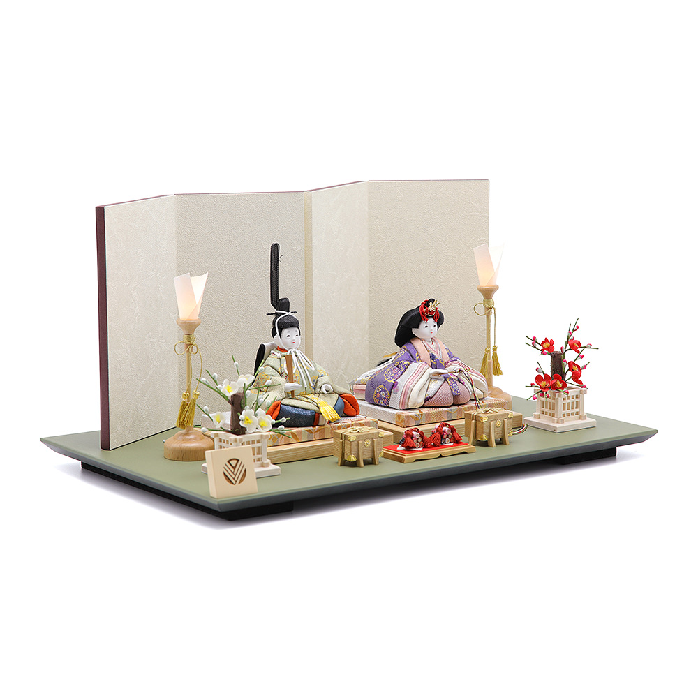屏風は静岡県にて製作した漆喰のような質感の白い屏風。爽やかな印象で一閑塗の飾り台と大変相性の良いシンプルながらお洒落な品です。