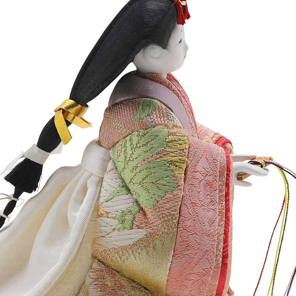 お衣装とその装飾についても小さなサイズでは実現が難しいこだわりをふんだんに込めた、確かな技術に裏打ちされた最高品質のお雛様に仕上げております。一つひとつのお人形は職人の手作り品のため、それぞれ微妙な違いがございますが、お客様のために製作された世界に一つのお人形です。