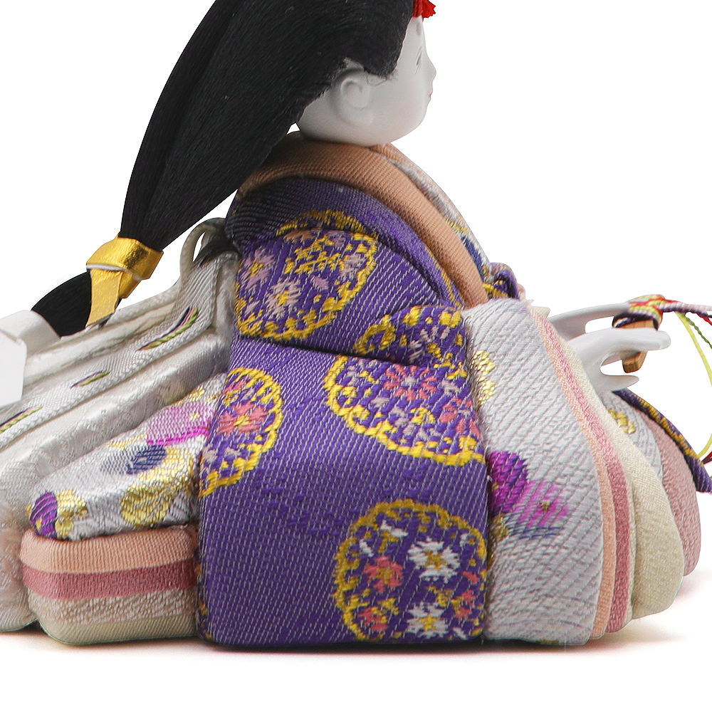 お衣装とその装飾についても小さなサイズでは実現が難しいこだわりをふんだんに込めた、確かな技術に裏打ちされた最高品質のお雛様に仕上げております。一つひとつのお人形は職人の手作り品のため、それぞれ微妙な違いがございますが、お客様のために製作された世界に一つのお人形です。