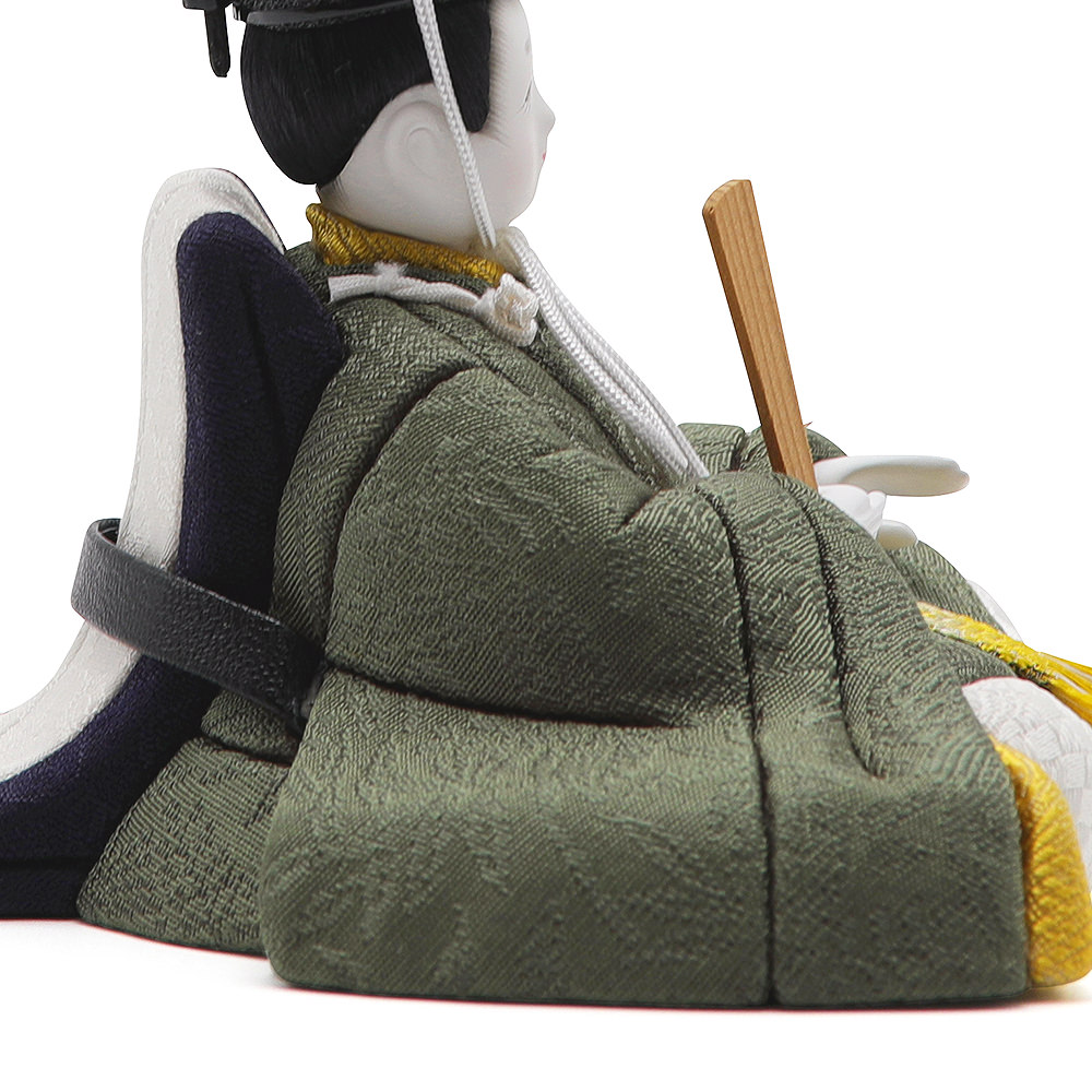 高貴で日本らしいお色の親王様と清楚な三人官女を中心に、儚い日本らしい美しさを表現した品でまとめたこだわりの五人飾りです。