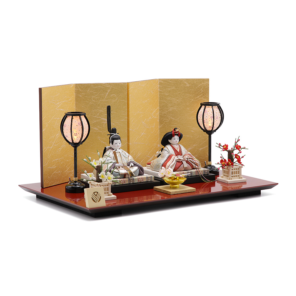 鮮やかな飾り台、上品な屏風と親王様