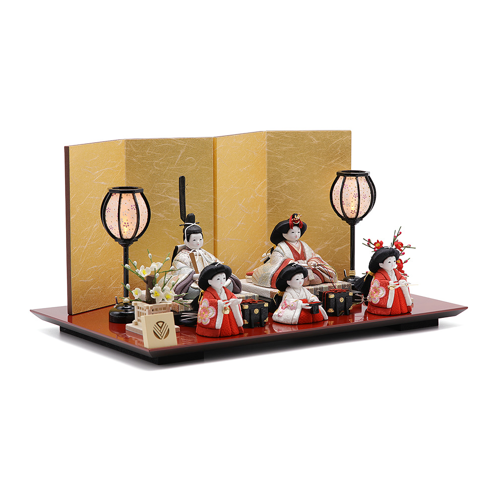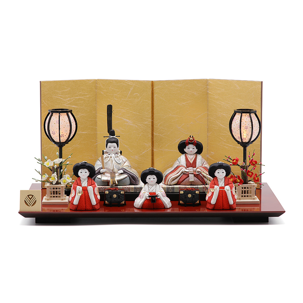 鮮やかな飾り台、上品な屏風を合わせた五人飾り